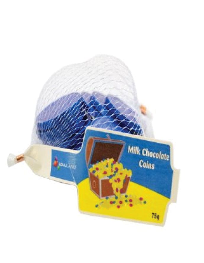 Lolliland Blue Milk Chocolate Coins are delectable milk chocolates molded into coin shapes and wrapped in vibrant blue foil. Each 75g mesh bag contains approximately 10 to 11 coins, making them perfect for party favors, candy buffets, or themed events. These coins are crafted in Italy, ensuring high-quality taste and presentation.