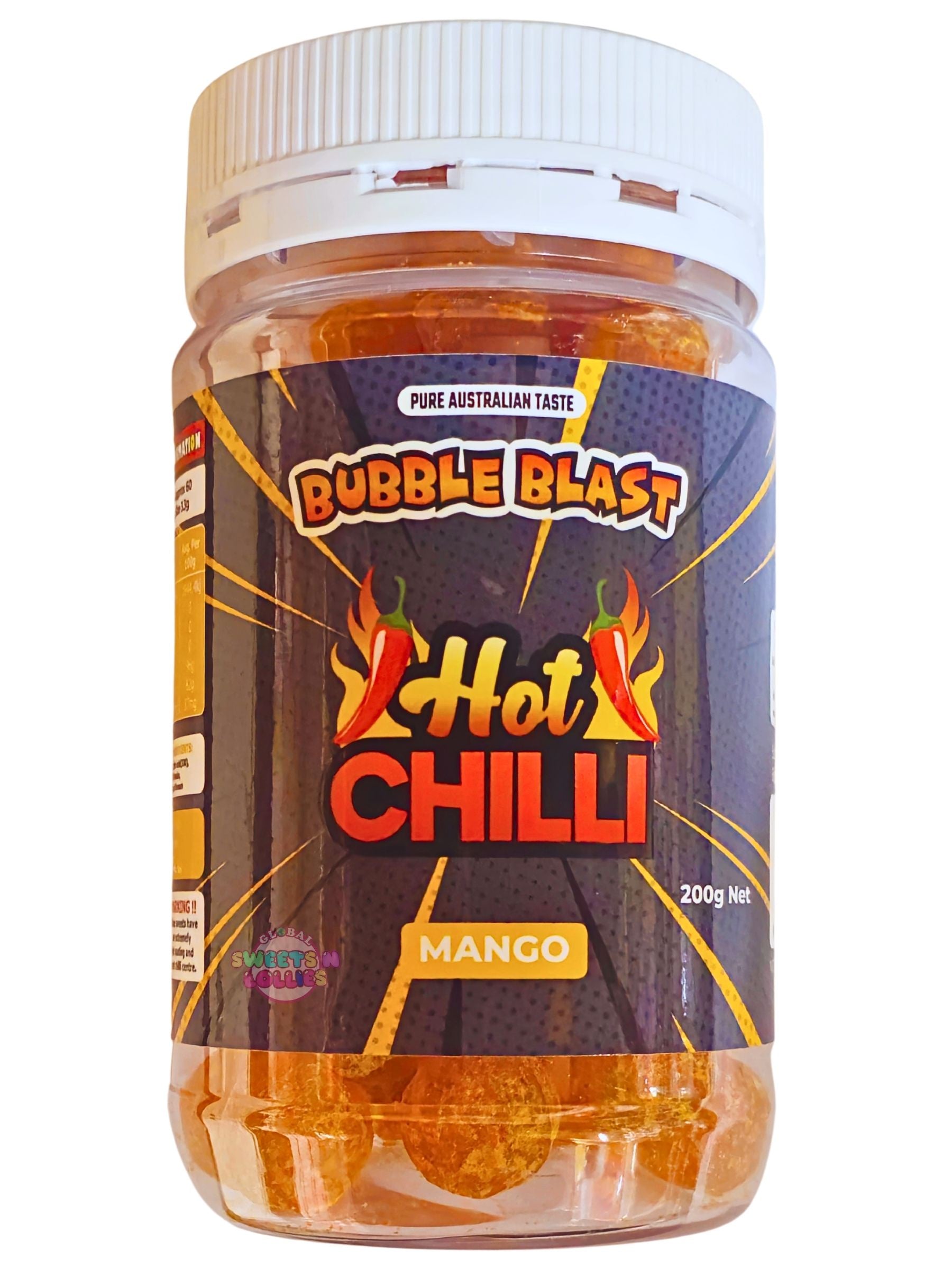 Bubble Blast Hot Chilli Mango (200g) are soft, chewy candies infused with luscious mango flavor and a fiery chili kick. Each piece delivers a sweet, tropical fruit taste that gives way to a warming heat, creating a thrilling contrast of flavors. Perfect for adventurous snackers, sharing with friends, or adding a daring twist to candy bowls, this generous 200g pack ensures plenty of bold, mouth-tingling fun.
