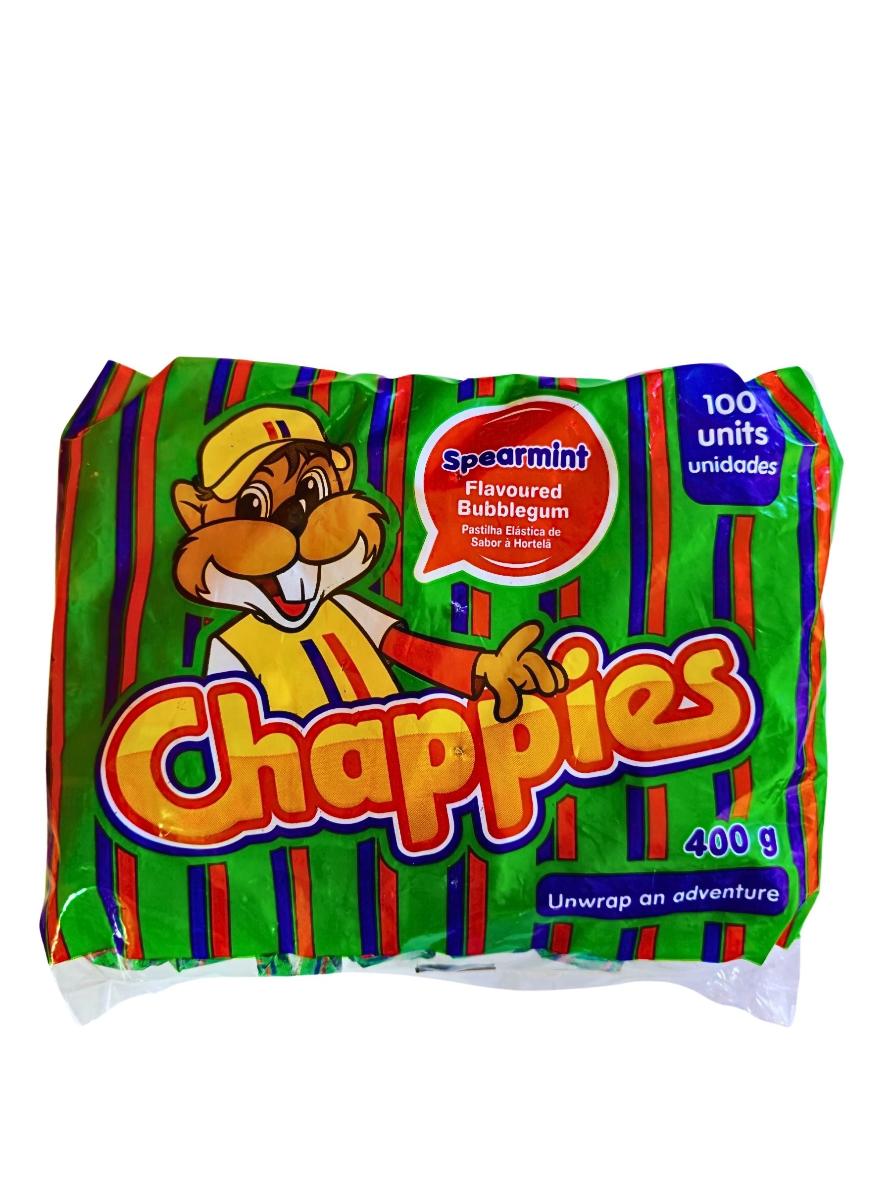 Chappies Spearmint (400g, 100 pcs) are crisp, sugar-coated gum squares delivering a refreshing burst of cool spearmint in every chew. With a satisfying snap from the delicate shell and long-lasting minty flavor, they’re perfect for freshening up anytime or sharing with friends.