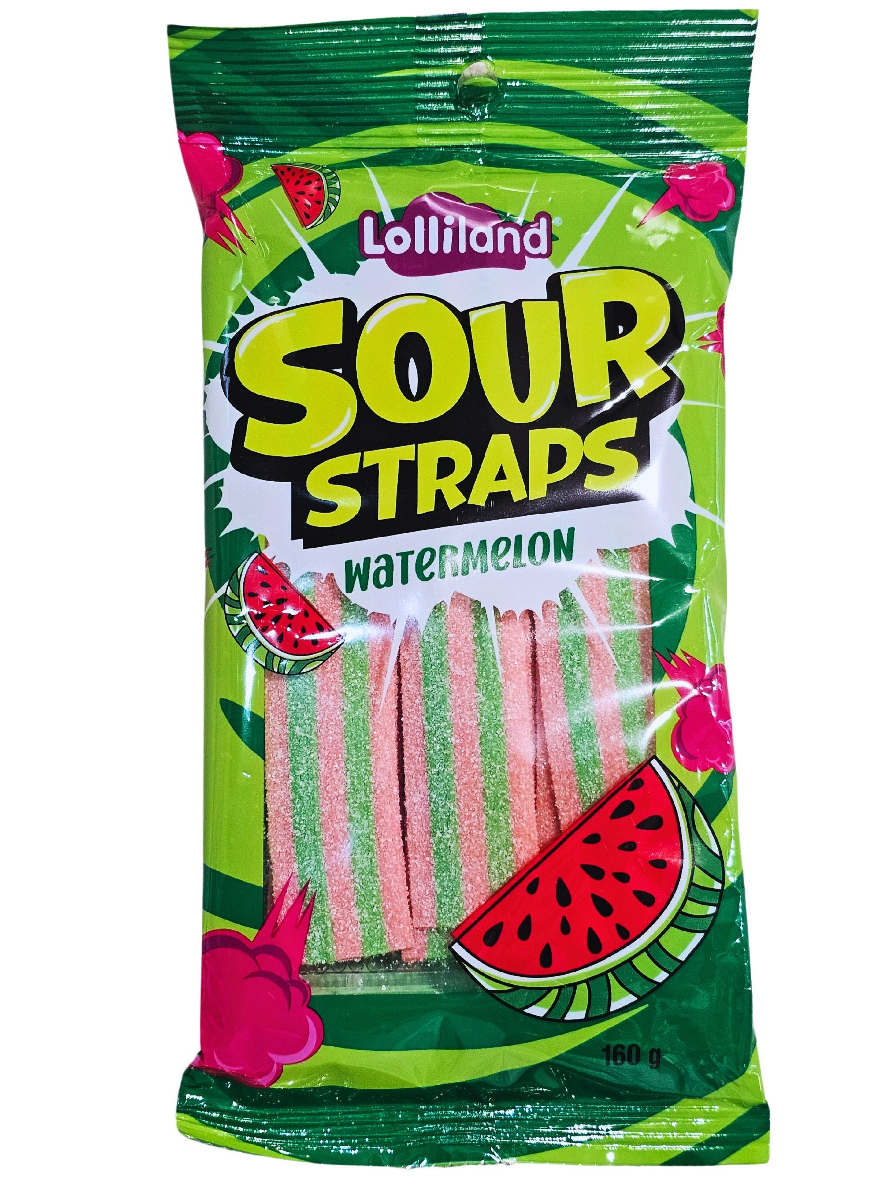 Lolliland Sour Straps Watermelon are a classic sour candy known for their intense watermelon flavour and the sour sugar coating.