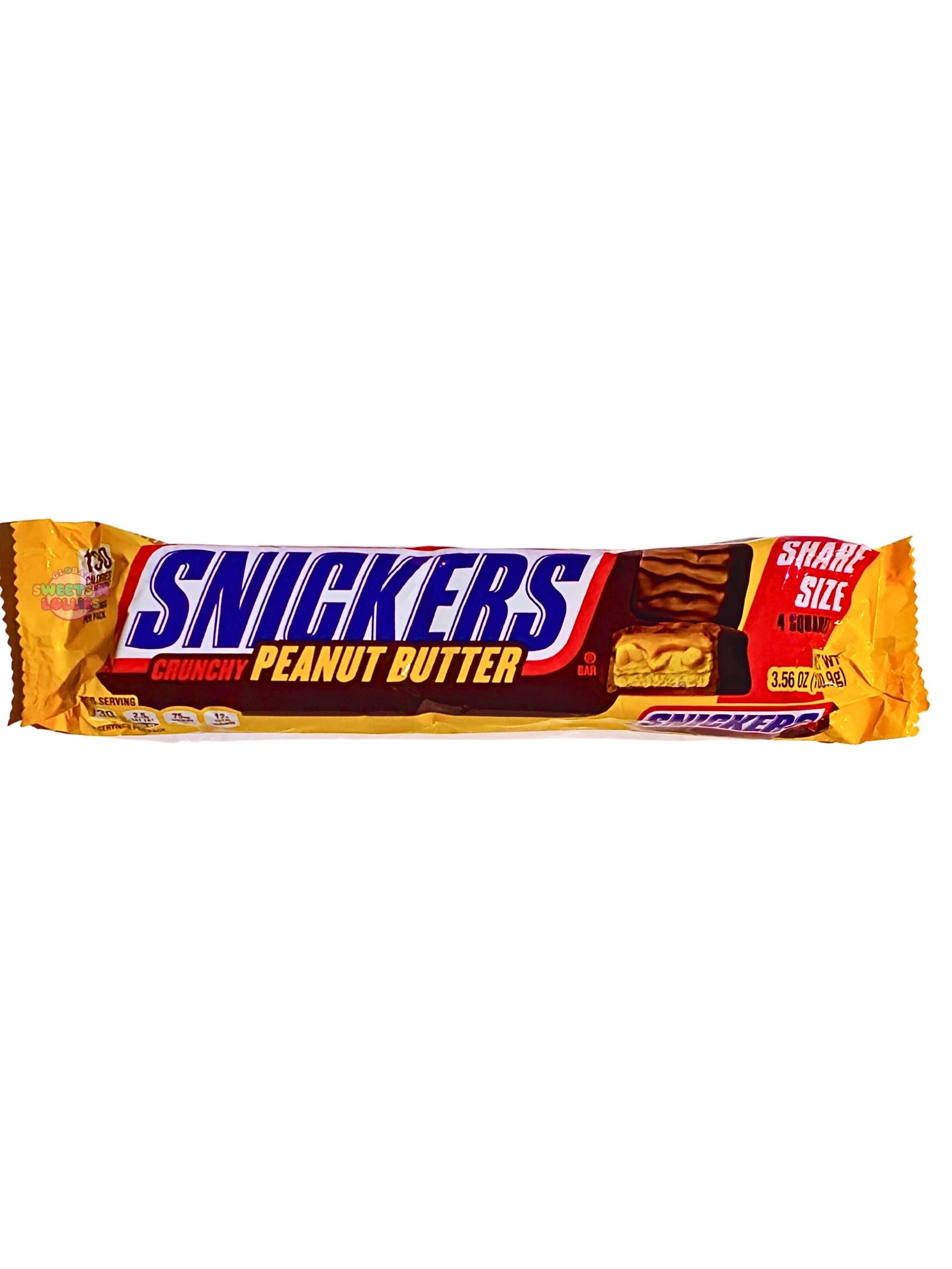 The Snickers Crunchy Peanut Butter 100.9g bar is a popular variation of the classic Snickers, often sold as a "share size" with four squares.